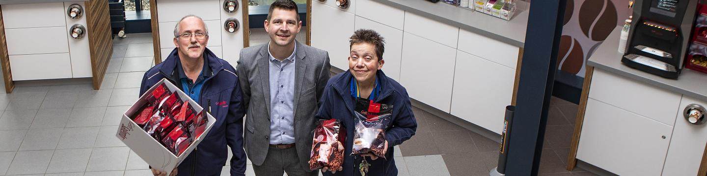 Meint de Vries en Laura Veltman zijn gedetacheerd bij Overwijk Koffiesystemen. Accountmanager Pieter Hoekstra: ‘Op deze twee kun je bouwen!'.