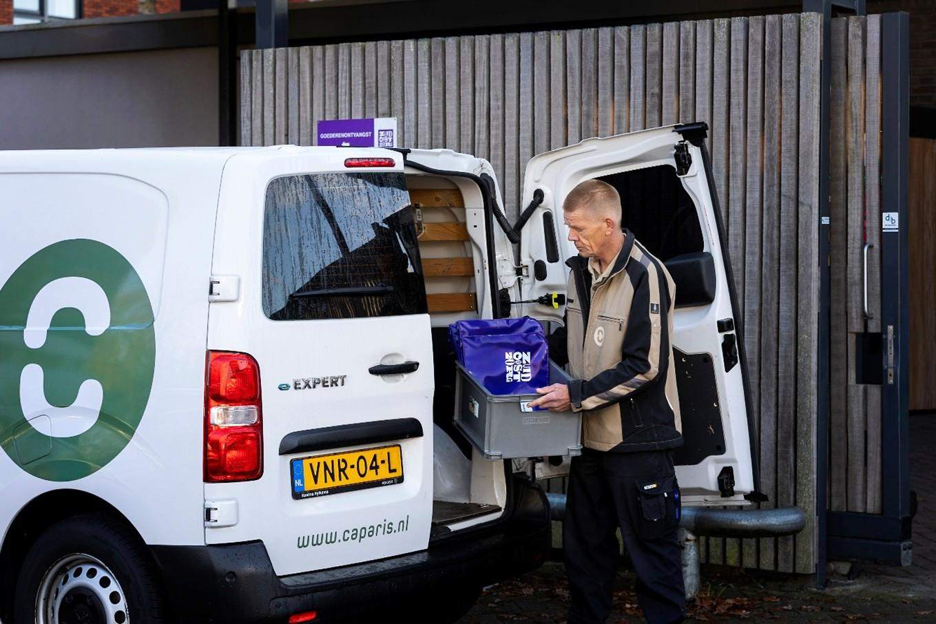 René is de vaste chauffeur voor deze route. Hij start zijn werkdag bij Caparis Business Post in Drachten, koppelt de elektrische auto los en maakt zich klaar voor zijn rit langs dertien ZuidOostZorg-locaties. René over zijn werkdag: "Door die kleine aanpassing in de route neem ik nu ook zorg- en hulpmiddelen mee. Dat maakt mijn werk afwisselender en geeft me extra verantwoordelijkheid. Fijn dat er zoveel vertrouwen in mij is.”